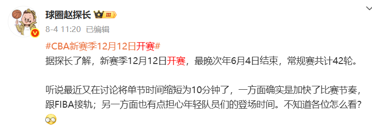 CBA新赛季将在今年12月12日才会开赛,最晚明年6月4日结束,常规赛总共42轮,相信已经有不少人迫不及待看到陈国豪身披广东队或广州队战袍的样子。